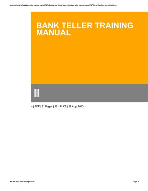 Read Online Bank Teller Training Manual Doc